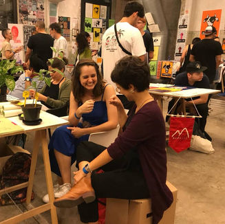 Conduzi um exercício de chegada e despertar de sentidos tentando fazer vibrar a questão "Como se entra em uma obra de Clarice?", e a confecção de lambes como manifestação artística daquilo que aconteceu com cada um de nós ao ler o texto – fugindo de questões interpretativas, e abrindo espaço para atravessamentos que nos atingiram nesse instante coletivo de presença.